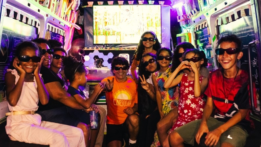 Van interativa e sessões de cinema ao ar livre marcaram a 6ª edição do CineSolarzinho, reunindo estudantes e famílias