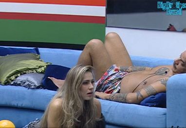 Renata revelou para João Carvalho que fará sexo se for eliminada, caso ela vá para o paredão na próxima votação. Ela conversou com o brother na madrugada deste domingo (4) na sala, durante a festa Dancing Days.