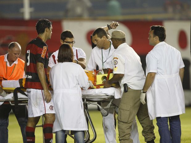 O goleiro Felipe levou a pior em um lance na área do Flamengo durante a partida contra o Duque de Caxias na noite deste domingo, pela segunda rodada da Taça Rio, segundo turno do Carioca. O jogador bateu a cabeça, desmaiou em campo e precisou deixar o local de ambulância. Por conta disso, ficará sete dias afastado dos treinamentos e não jogará o clássico Fla-Flu.
