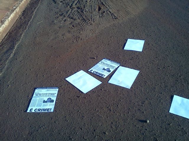 Nesta quinta feira (08), a cidade de Maracaju amanheceu infestada de panfletos acusando o prefeito Celso Vargas de ter cometido o crime de apropriação indébita, denunciado já pelo MPE, com a pena da justiça bloquear R$ 100 mil reais.