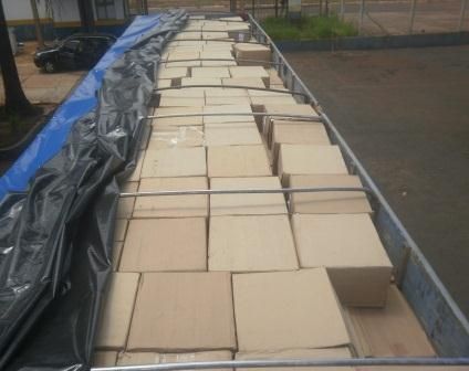 A carreta VW modelo 19320 com placas de Curitiba/PR, que vinha logo em seguida, teve sua carga conferida e constatada que transportava aproximadamente 800 caixas de cigarros de origem estrangeira.