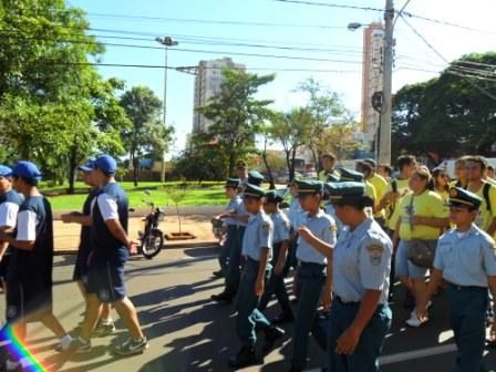 Alunos do Cematran (Centro Educativo de Múltiplas Atividades de Trânsito, projeto mantido pelo Batalhão de Polícia Militar Rodoviária, que atende pelo menos 100 crianças e adolescentes de 7 a 14 anos, com informações sobre trânsito, meio ambiente e educação moral e cívica, e noções de cidadania, também participaram da caminhada.