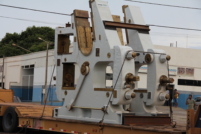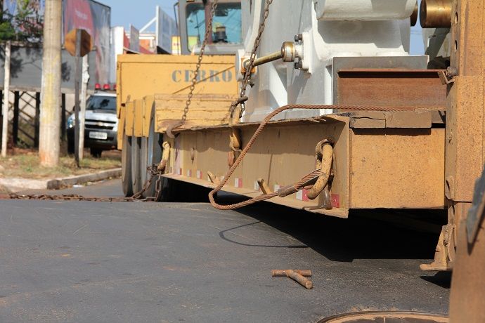 A carga, um castelo que faz parte da moenda de usina, com mais de 25 toneladas, segundo o motorista de 47 anos, disse que o destino era a usina em construção em Ivinhema.