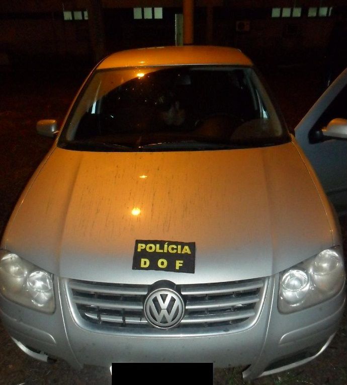 De acordo com o DOF, durante checagem junto ao sistema policial, foi constatado que as placas afixadas no veículo encontram-se cadastradas para um veículo Ford/Courrier, sem restrição, e que o veículo abordado trata-se de VW/Bora, ano 2010, com placas da cidade de Lages/SC, com queixa de furto ocorrido na cidade de Rio do Sul/SC em 15 de abril de 2012.