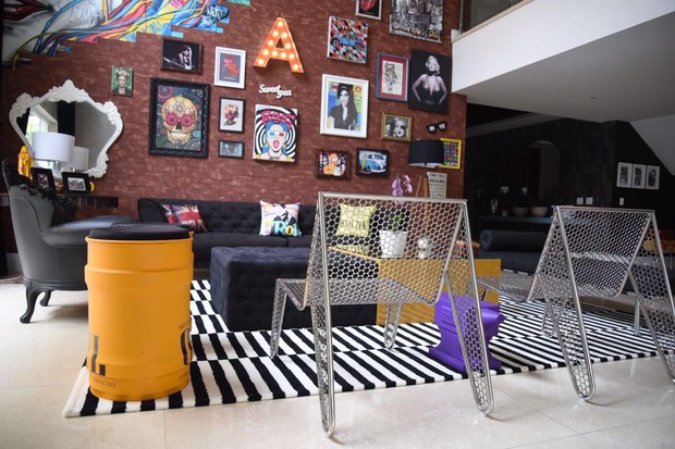 Com muitas cores, design arrojado e quadros (da própria Anitta) e de Frida Kahlo, Charles Chaplin, além de referências musicais como Amy Whynehouse e Michael Jackson. A sala ficou colorida e contemporânea.