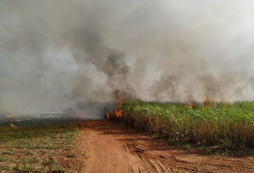Por volta das 14h desta terça-feira (1º), um incêndio queimou aproximadamente 130 hectares de cana, na fazenda Alvorecer, município de Batayporã.