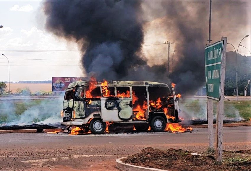 Nesta sexta-feira (25), uma VW/Kombi, que pertence a Instituição "Esquadrão da Vida", ficou destruída por um incêndio, na rotatória de acesso a cidade de Batayporã.