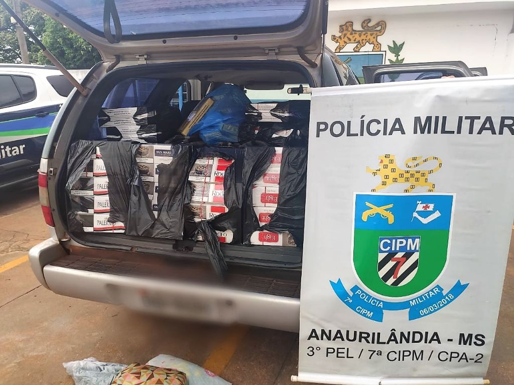 Na tarde desta terça-feira (3), a guarnição da Polícia Militar em Anaurilândia apreendeu um veículo GM/Blazer, carregado com 2.940 maços de cigarros contrabandeados, e prendeu os dois ocupantes pelo crime de corrupção ativa.