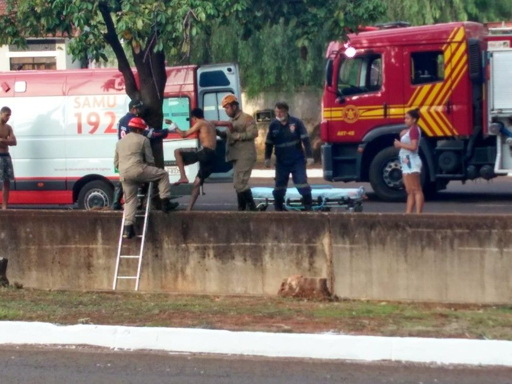 Um rapaz foi resgatado de dentro do córrego Segredo, no bairro Cabreúva, em Campo Grande, por volta das 6h desta sexta-feira (17). Ele caiu de uma altura de cerca de 6 metros.