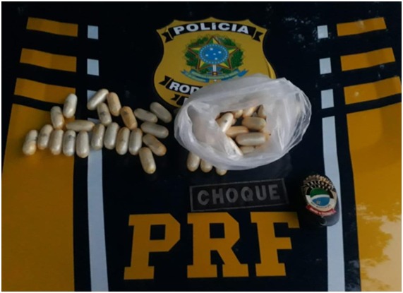 Em continuidade, na madrugada de quinta-feira (23), por volta das 3h, no km 602 da BR-262, no município de Miranda, as equipes abordaram um ônibus de transporte de passageiros que seguia no sentido Corumbá a Campo Grande e apreenderam quase cinco quilos de cocaína.