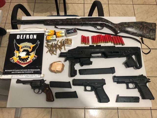 Policiais da Defron (Delegacia Especializada de Repressão aos Crimes de Fronteira), prenderam dois homens, de 42 e 52 anos, com arsenal nesta quarta-feira (19), em Sete Quedas, cidade ao lado do território paraguaio. Em uma casa localizada no perímetro urbano, foram encontradas quatro armas e 505 munições.