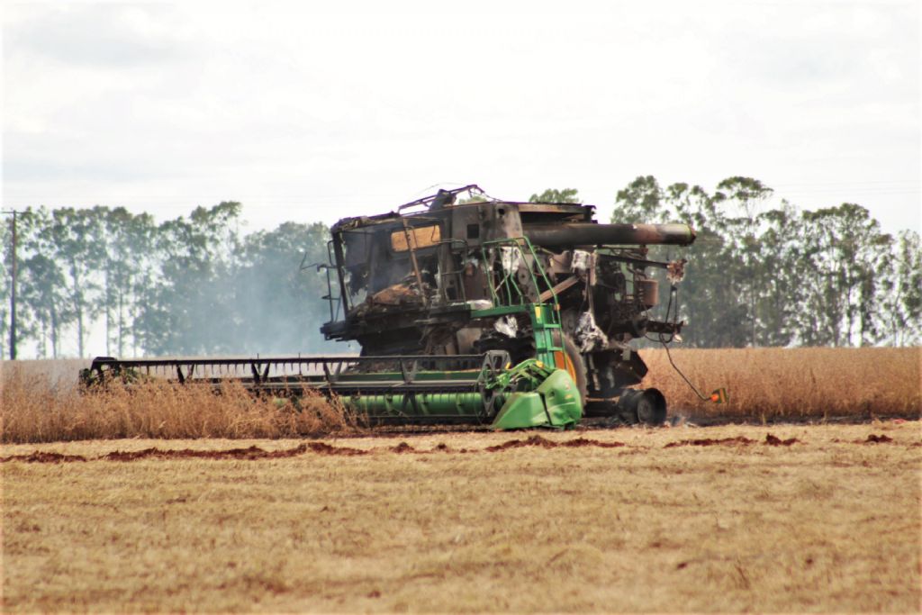 A principal hipótese é que o incêndio tenha sido consequência de uma pane elétrica. A colheitadeira era nova e está avaliada em mais de R$ 600 mil.