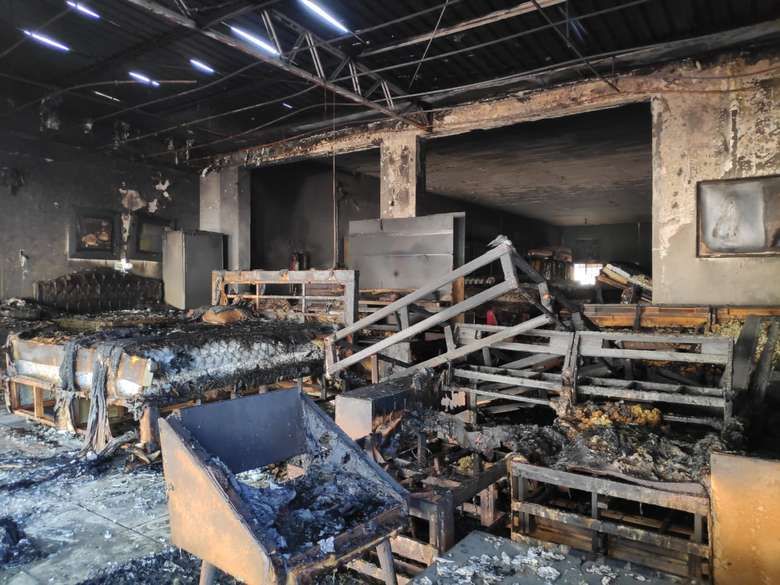 Um incêndio registrado na madrugada deste domingo (15) causou destruição total na loja da empresa Só Colchões localizada na Rua João Cândido Câmara, no Jardim América, em Dourados.