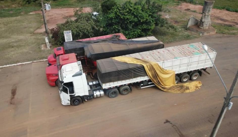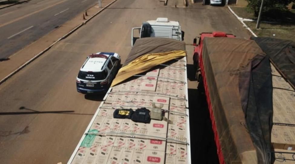 Em Naviraí, PM e PF apreendem duas carretas e um caminhão carregados com cigarros contrabandeados