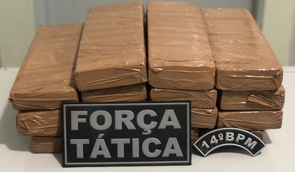Após a busca, foram localizados 14 tabletes de maconha, pesando aproximadamente 13 quilos. Ainda foram apreendidos apetrechos para embrulhar os entorpecentes, como fita adesiva marrom, plástico filme e balança de precisão, além de certa quantia de dinheiro.