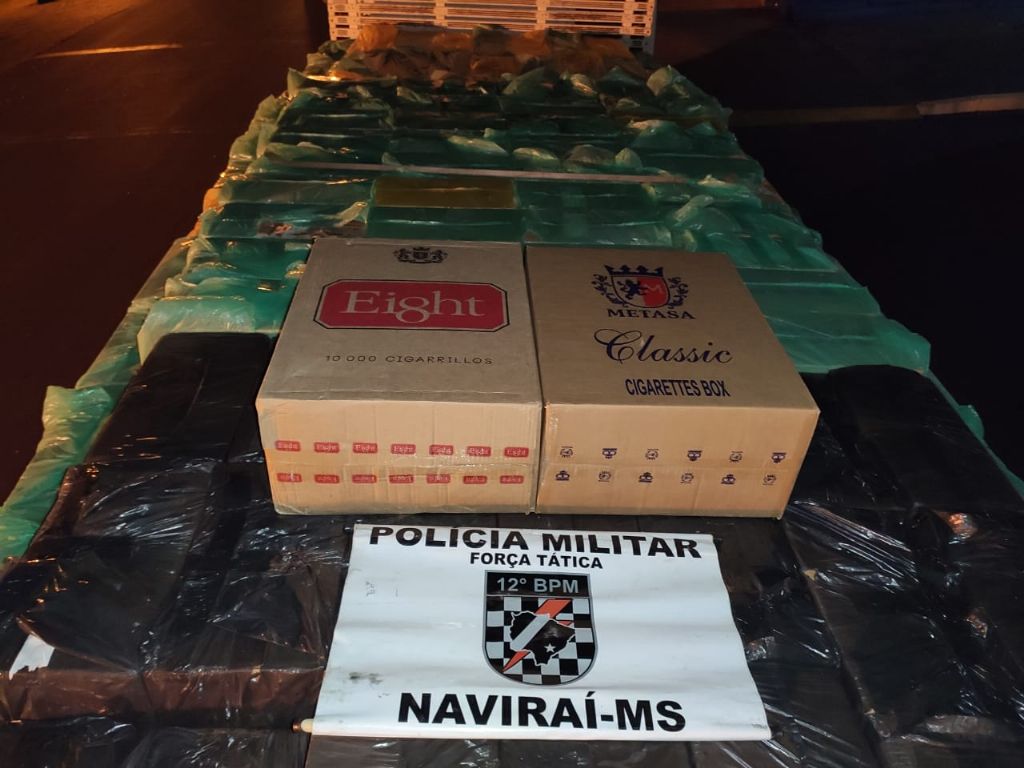 Na noite de domingo (20), por volta das 19h, uma equipe da Força Tática do 12º Batalhão de Polícia Militar, em ação conjunta com a Polícia Federal, no âmbito da Operação Hórus, apreendeu 7,5 mil pacotes de cigarros contrabandeados.