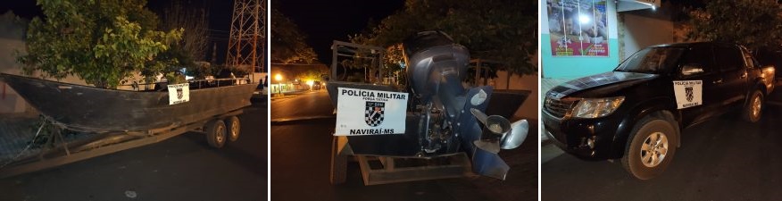 Durante checagens nos sistemas de restrição criminal, foi verificado que a caminhonete Hilux tinha registo de roubo/furto e que a lancha estava preparada para o transporte de cigarros.