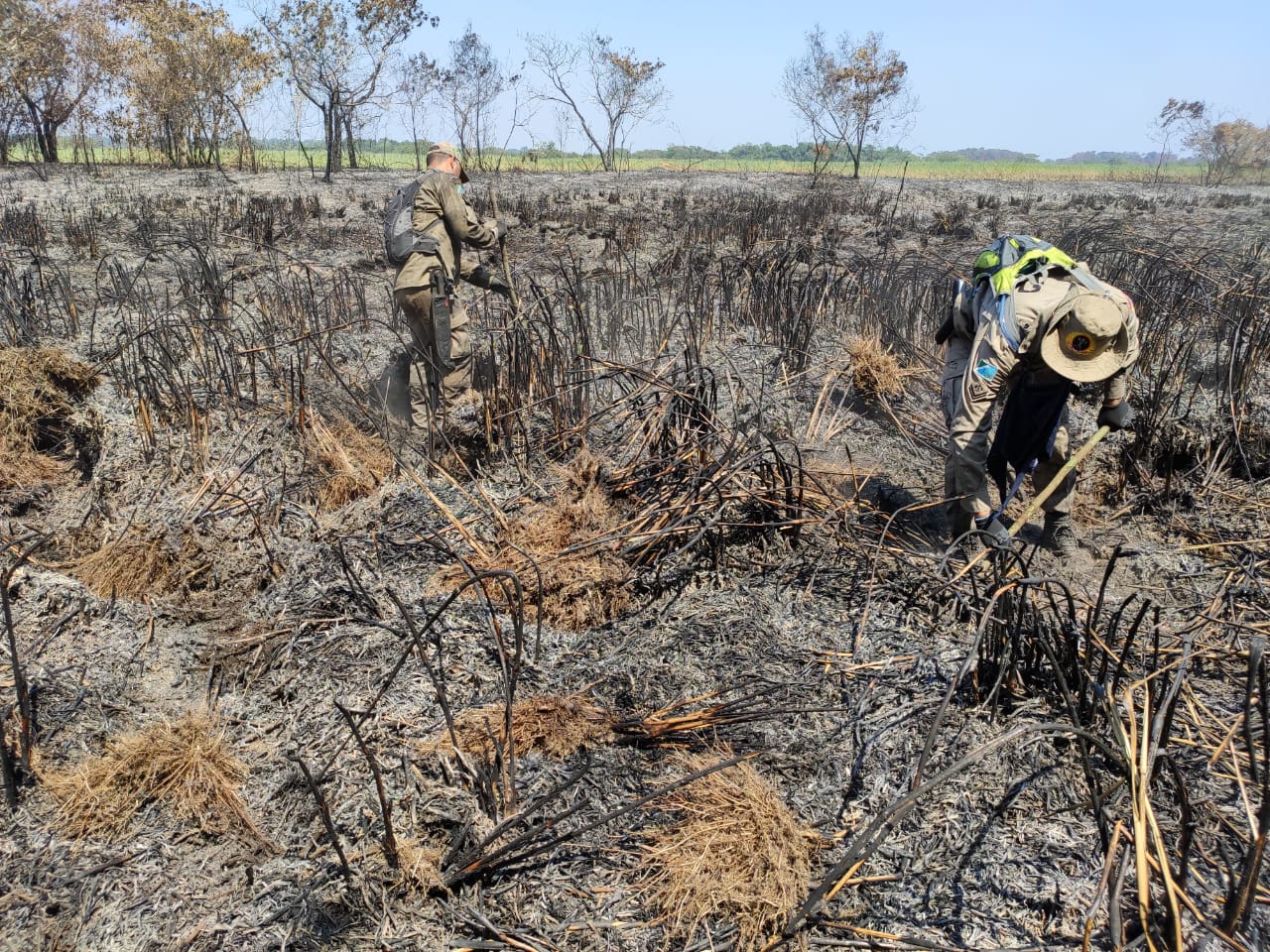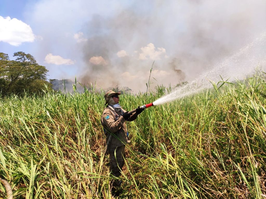 A guarnição de incêndio florestal é composta pelo sargento Mateus, cabo Dias e cabo Da Cunha, que, a partir do dia 7 de outubro, vão se juntar a equipes de outros quartéis para combater o incêndio que está fora de controle e ameaça atingir o Parque Estadual das Várzeas do Rio Ivinhema.