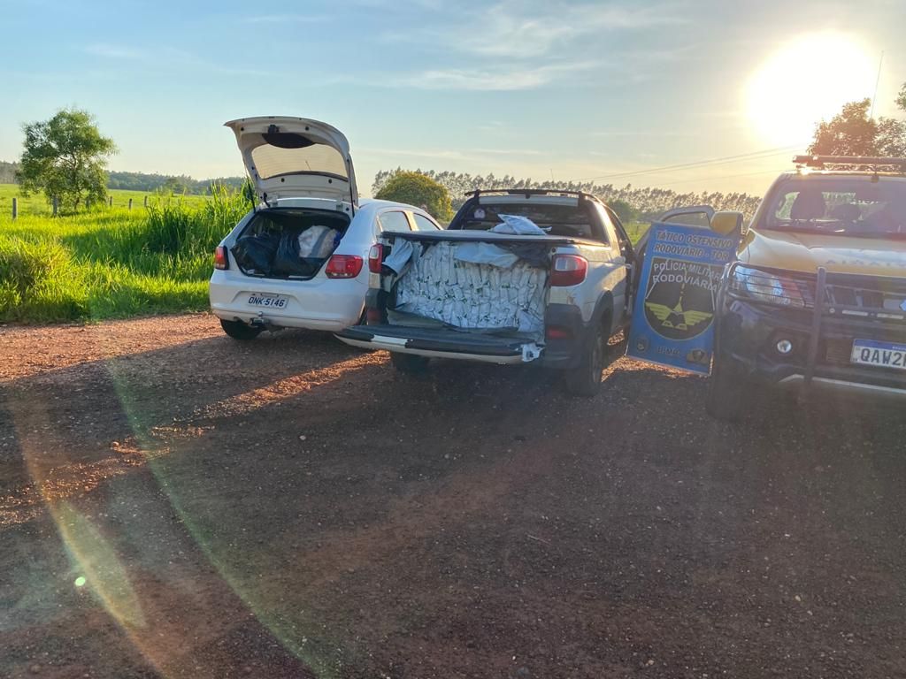 A ação ocorreu quando a equipe realizava policiamento naquela rodovia no trecho entre Antônio João a Bela Vista e visualizou dois veículos, um VW/Gol e um Fiat/Strada, que ao perceberem a presença da viatura da PMR adentraram uma aldeia da região na tentativa de se evadir da abordagem. Após diligências na região e com o apoio da PM de Bela Vista, a qual abordou próxima a cidade o veículo Gol com dois ocupantes, de 31 e 37 anos, enquanto a equipe da PMR após perseguição abordou o veículo Fiat/Strada, o qual era conduzido por um homem, de 36 anos, e que estava completamente carregado com agrotóxicos oriundos do Paraguai.