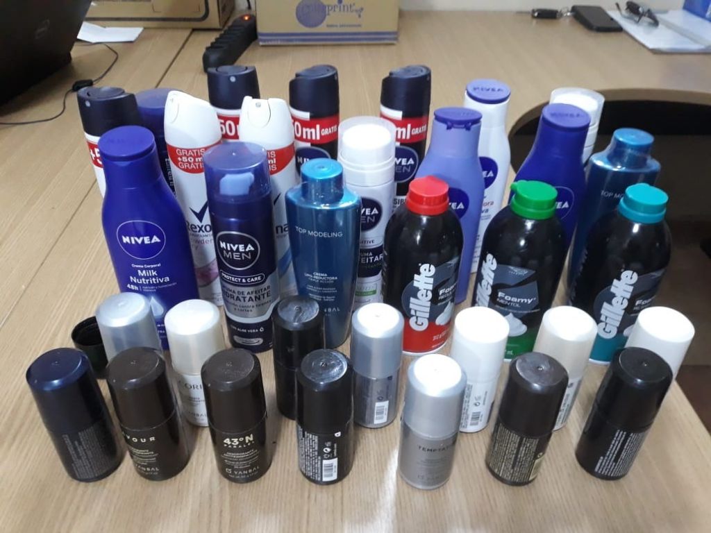 Após checagem na mochila de mão que a passageira transportava, os policiais localizaram diversos produtos cosméticos, como espumas de barbear e desodorantes, contendo cocaína. Ao todo, foram apreendidos 3,7 quilos da droga.