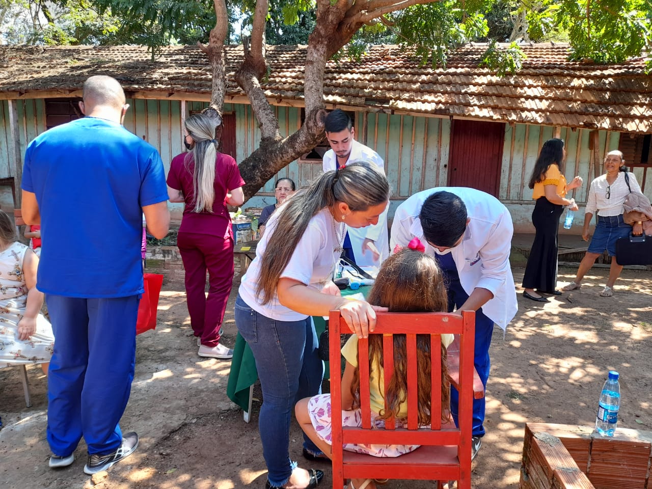 Uma das atividades aconteceu na Escola Básica, Escola Básica Ivar Gonzalez Safstrand, onde moradores locais e do distrito de Sanga Puitã em Ponta Porã foram atendidos pelos professores doutores da UCP com o acompanhamento dos universitários.