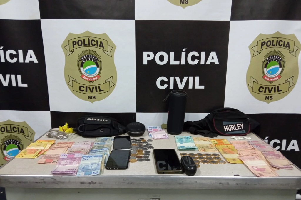 Num dos locais foi localizado cerca de R$ 500,00, quatro porções de cocaína seis porções de maconha e dois aparelhos celulares. Um indivíduo, de 21 anos, foi preso por tráfico de drogas (relacionado a induzir, instigar ou auxiliar alguém ao uso indevido de droga), e um adolescente, de 17 anos, foi conduzido para prestar esclarecimentos.