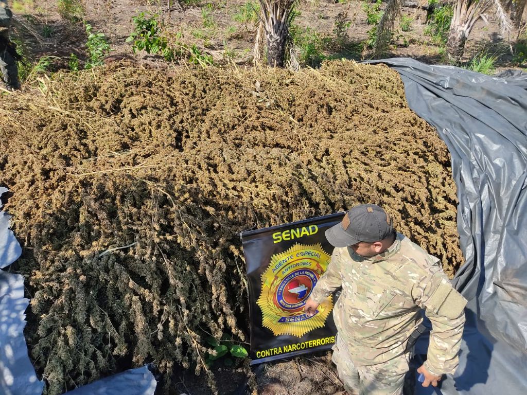 Agentes da Senad (Secretaria Nacional Antidrogas) realizaram a maior apreensão de maconha do ano, em Pedro Juan Caballero, Paraguai, neste sábado (2). A droga estava em 13 acampamentos na região de fronteira com Ponta Porã. Ao todo, foram encontradas mais de 55 toneladas do entorpecente.