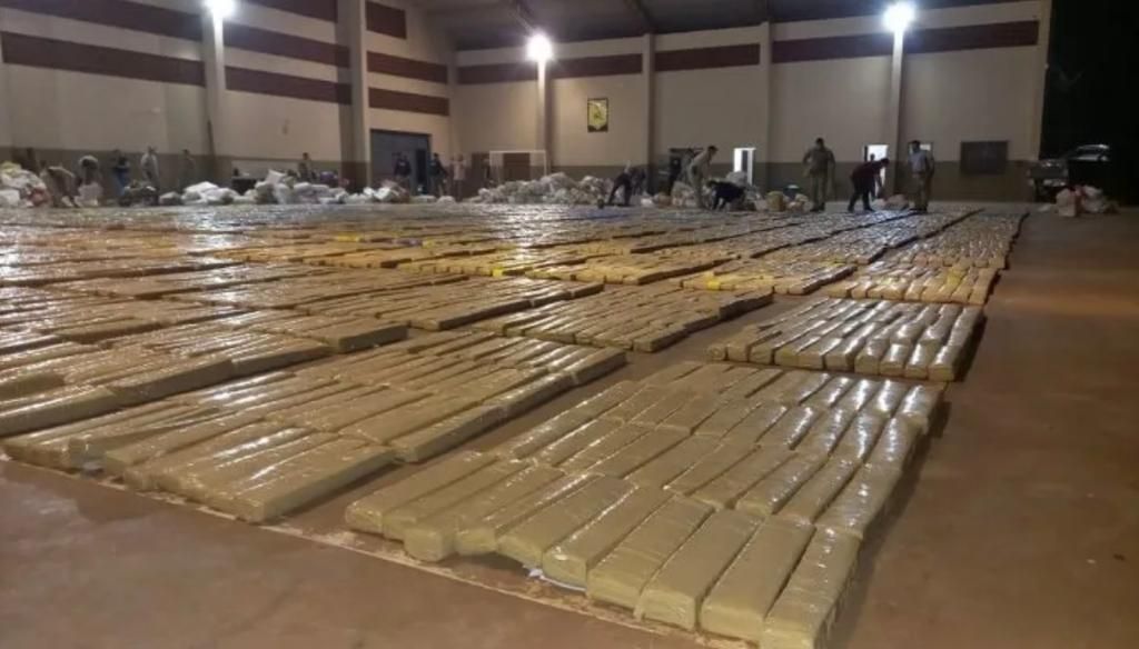 Foram encontrados centenas de tabletes de maconha e vários sacos da droga. Também foram apreendidas prensas e utensílios utilizados para o preparo da droga, que tinha como destino o Brasil.