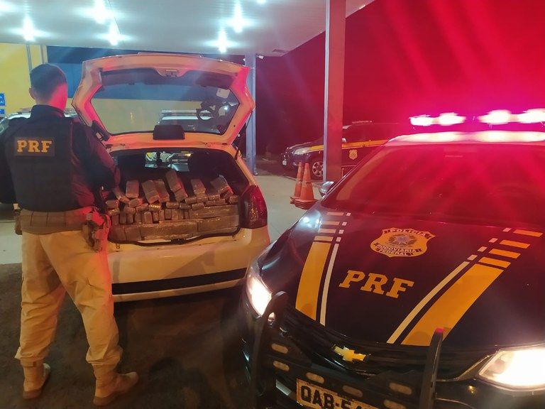 Durante a fiscalização, os policiais viram que o interior do veículo estava carregado com tabletes de maconha.