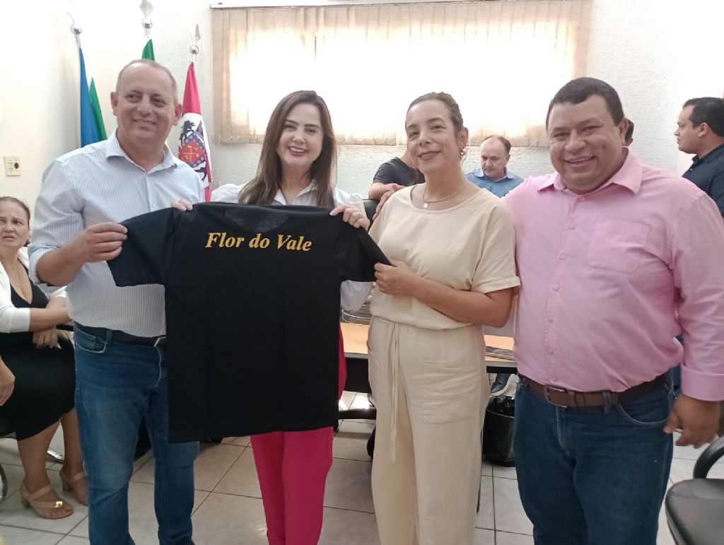 Prefeito Clovis do Banco, juntamente com os vereadores Jorge de Febbo e Maria Benedita, secretários e diretores receberam, na última sexta-feira (24), a deputada estadual Mara Caseiro que cumpriu agenda no município para oficializar a entrega dos instrumentos musicais destinados a Banda Marcial Jesus Ferreira Neves.