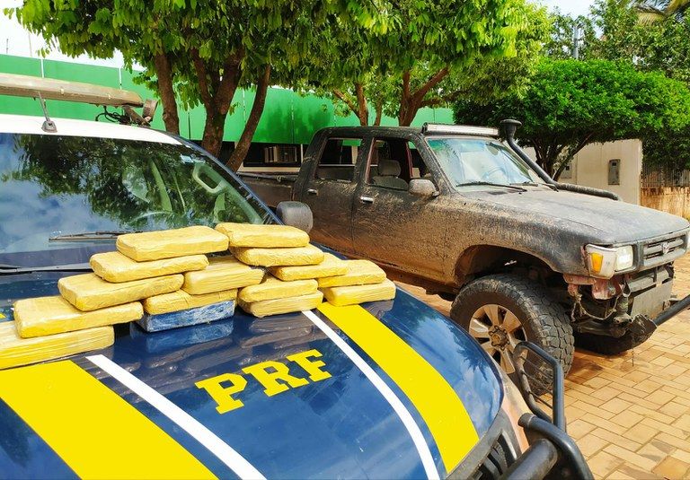 A droga foi localizada no interior do veículo Toyota/Hilux, abordado por policiais rodoviários federais na BR-419 e ocupado por dois homens.