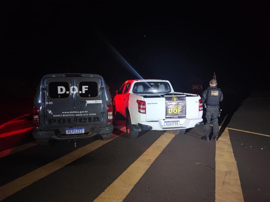 Em Laguna Carapã, policiais do DOF (Departamento de Operações de Fronteira) recuperaram, na noite de sábado (30), uma Mitsubishi/L200 Triton de cor branca com placas afixadas de Belo Horizonte (MG).