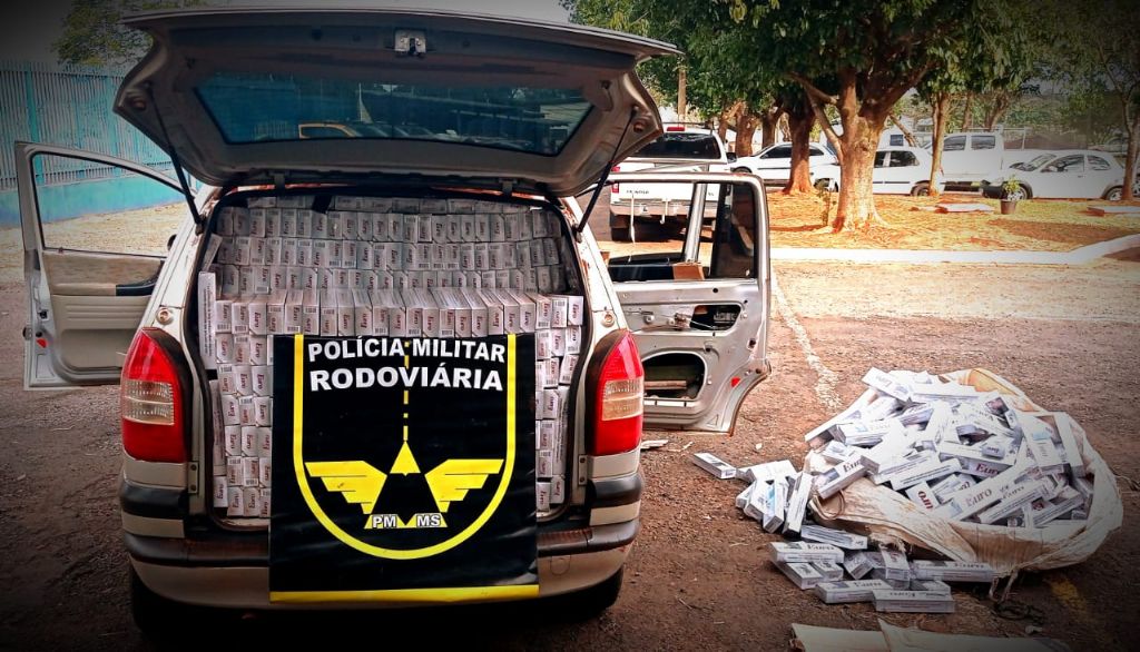 A equipe da PMR realizou abordagem ao veículo, que foi abandonado e, em seu interior havia cigarros contrabandeados do Paraguai, que posteriormente totalizaram 2.377 pacotes.