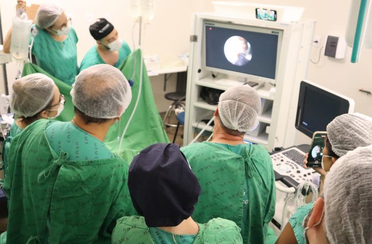 A cirurgia foi acompanhada por integrantes de Programas de Residência Médica do HRMS e profissionais de outras unidades através de parceria com a Associação de Ginecologia e Obstetrícia de Mato Grosso do Sul. Residente do Serviço de Ginecologia e Obstetrícia do HRMS, Gidelson Júnior Zagonel da Silva conta como foi acompanhar um procedimento do tipo pela primeira vez.