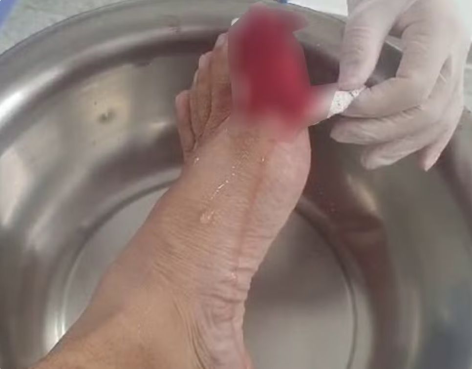 “Depois de tentar fazer a contenção do sangramento por adrenalina, a médica de plantão ligou para um cirurgião, como não continha, e, depois de duas ou três horas continuou sangrando, ele orientou que fosse feita uma cauterização. Então, precisou fazer uma cauterização, ou seja, queimar todos os vasos sanguíneos que estavam na ponta do dedo, para poder conter o sangramento”, relatou o empresário.