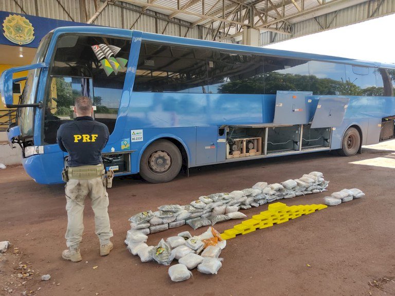 Ao entrar no ônibus para a vistoria, a equipe sentiu forte odor de maconha, levantando suspeitas de que o ilícito era transportado durante a viagem. Após buscas, foi descoberto um compartimento oculto, onde estavam escondidas embalagens de skunk e cocaína.