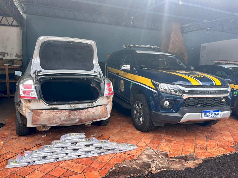 Policiais encontraram um compartimento oculto na carroceria do automóvel, onde estavam escondidos os tabletes da droga