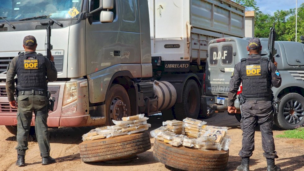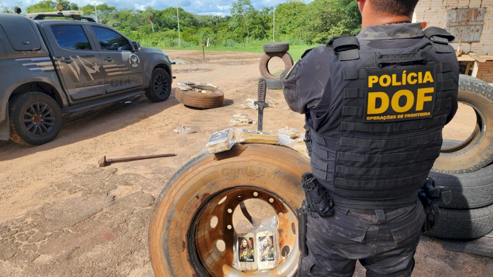 Os militares realizavam patrulhamento ostensivo no perímetro urbano da cidade, quando abordaram o condutor do caminhão. O homem, de 39 anos, estava agitado e com respostas desconexas. Os policiais decidiram realizar uma vistoria no veículo e localizaram 127 quilos de pasta-base de cocaína, distribuídos em 120 volumes prensados da droga nos pneus reserva.