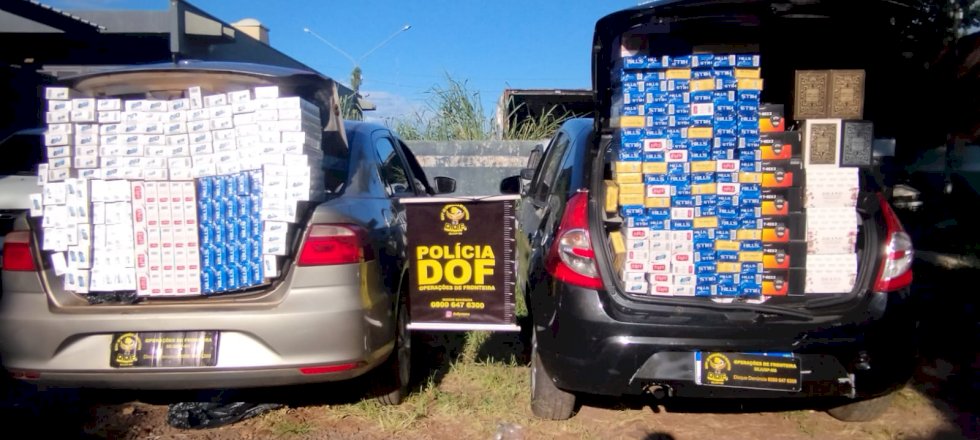 Os militares faziam bloqueio no Trevo do Copo Sujo, zona rural do município, quando abordaram os condutores dos automóveis. Durante vistoria nos carros foram encontrados cigarros, materiais de informática, perfumes e relógios.