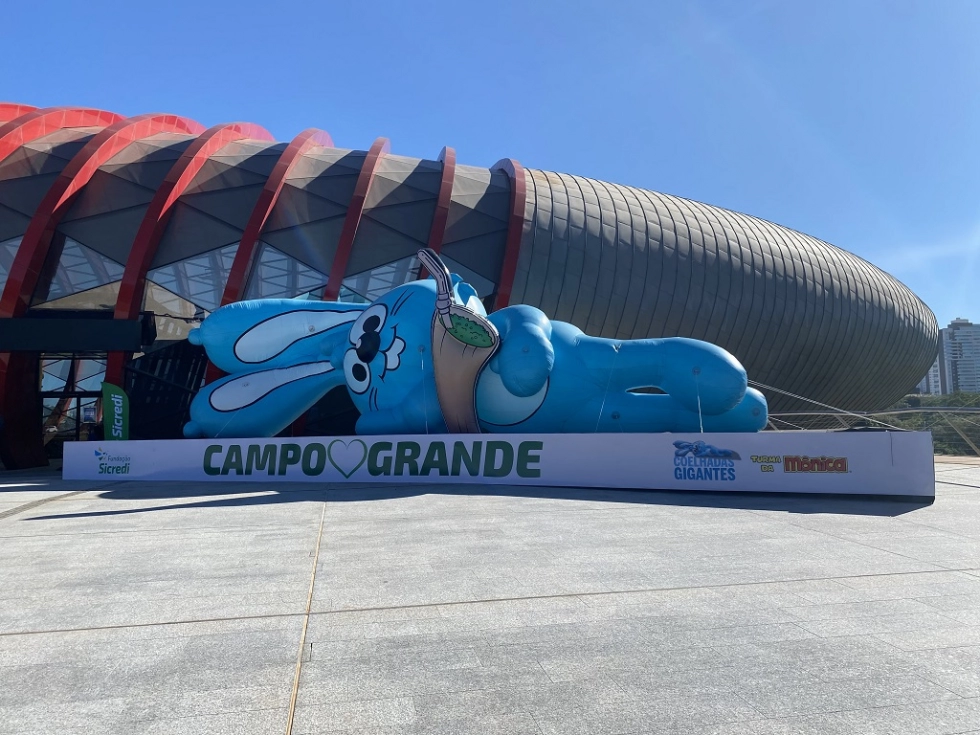 Visitantes do Bioparque Pantanal agora contam com um novo atrativo, o Sansão gigante da Turma da Mônica. O famoso boneco tem mais de 13 metros e está instalado na esplanada do maior aquário de água doce do mundo. A ação em parceria com o Sicredi celebra os 60 anos da personagem Mônica e a Semana Nacional da Educação Financeira. O boneco inflável ficará no local de 7 a 19 de maio.