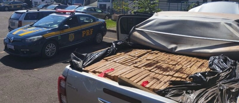A PRF (Polícia Rodoviária Federal) recuperou uma Toyota/Hilux e apreendeu 1.402 quilos de maconha e uma pistola, na manhã de segunda-feira (20), em Campo Grande.