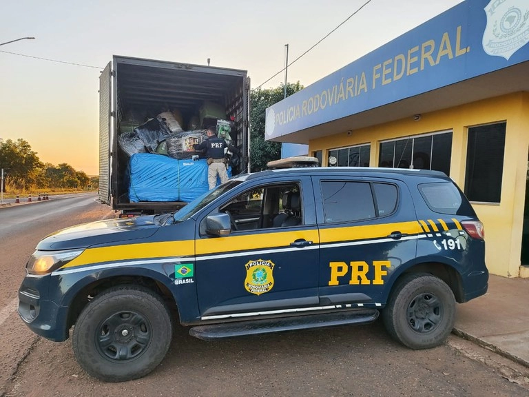 A PRF (Polícia Rodoviária Federal) apreendeu uma carga de mercadorias estrangeiras, na tarde deste sábado (1º), em Água Clara.