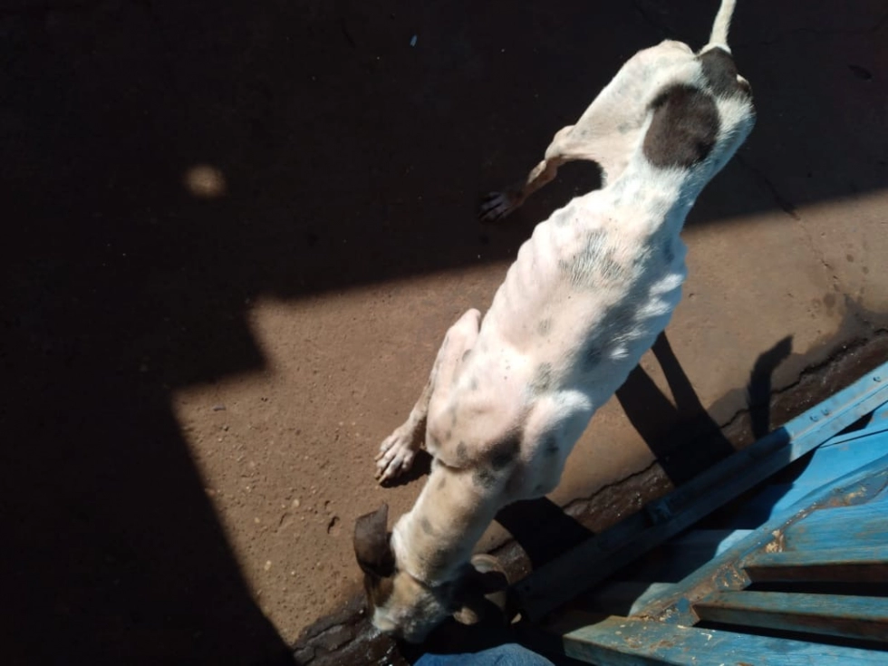 Animal estava em estado decadente, muito magro, infestado de ectoparasitas