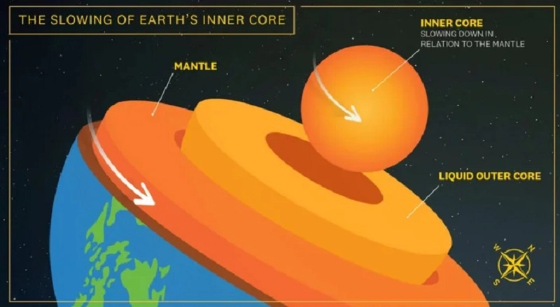 Em um estudo publicado na revista científica Nature Geoscience, um grupo de cientistas sugere que a rotação do núcleo da Terra começou a diminuir em 2019; esse processo foi tão intenso que, recentemente, o centro do planeta pode ter começado a girar na direção oposta.