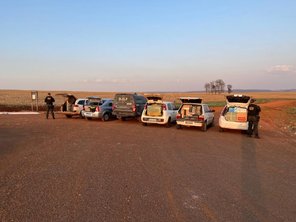 Os policiais faziam bloqueio na MS-164, próximo ao cruzamento com a MS-462, zona rural do município, quando abordaram o comboio. Nos automóveis foram encontrados cigarros, vestuários, eletrônicos, aparelhos de telefone celular entre outros itens.