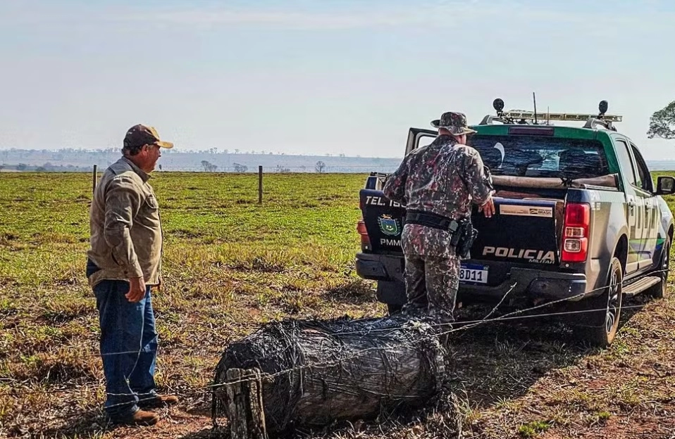 Policiais militares ambientais estavam atuando na Operação Prolepse, uma campanha de prevenção a incêndios, quando foram chamados para ir até a fazenda e realizar a inspeção do objeto.