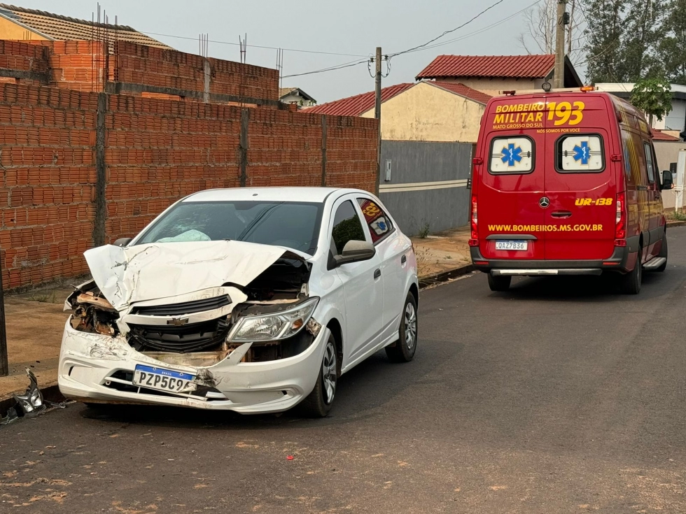 Uma mulher ficou ferida na tarde deste domingo (22), após um GM/Onix de cor branca, a qual conduzia, colidir na traseira de uma carreta que estava estacionada, na avenida André Moya Peres, no Residencial Portal do Parque, em Nova Andradina.