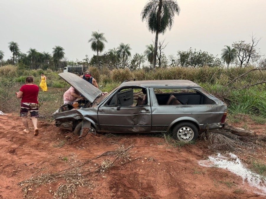 Conforme apurado no local, o condutor dirigia um VW/Parati, com placas de Nova Andradina, pela rodovia sentido ao distrito, quando, por motivos a serem apurados, perdeu controle direcional, saiu da pista capotando em seguida. O automóvel parou nas imagens da via.