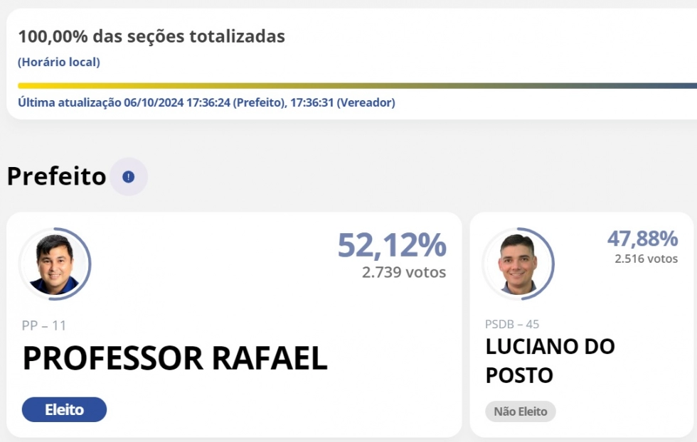Seu opositor Luciano do Posto obteve 47,88% dos votos