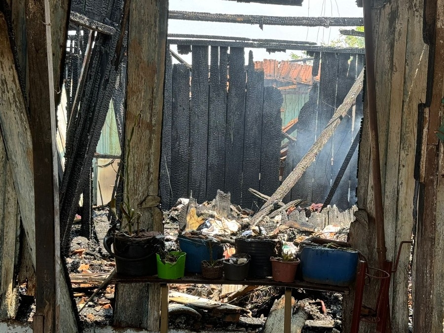 Parte de um imóvel localizado na rua Santo Antônio esquina com a rua Da Saudade, ficou destruído com incêndio provocado, suspostamente, por uma mulher, conforme descreve a ocorrência. O fato aconteceu na madrugada deste domingo (13), em Nova Andradina.